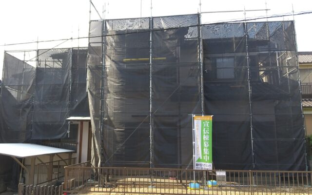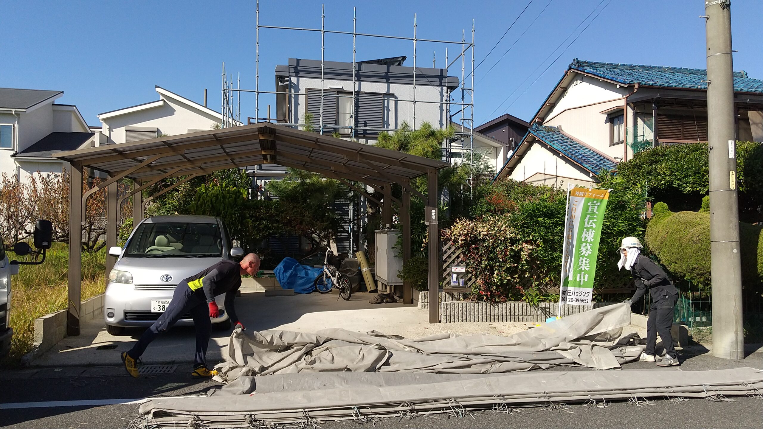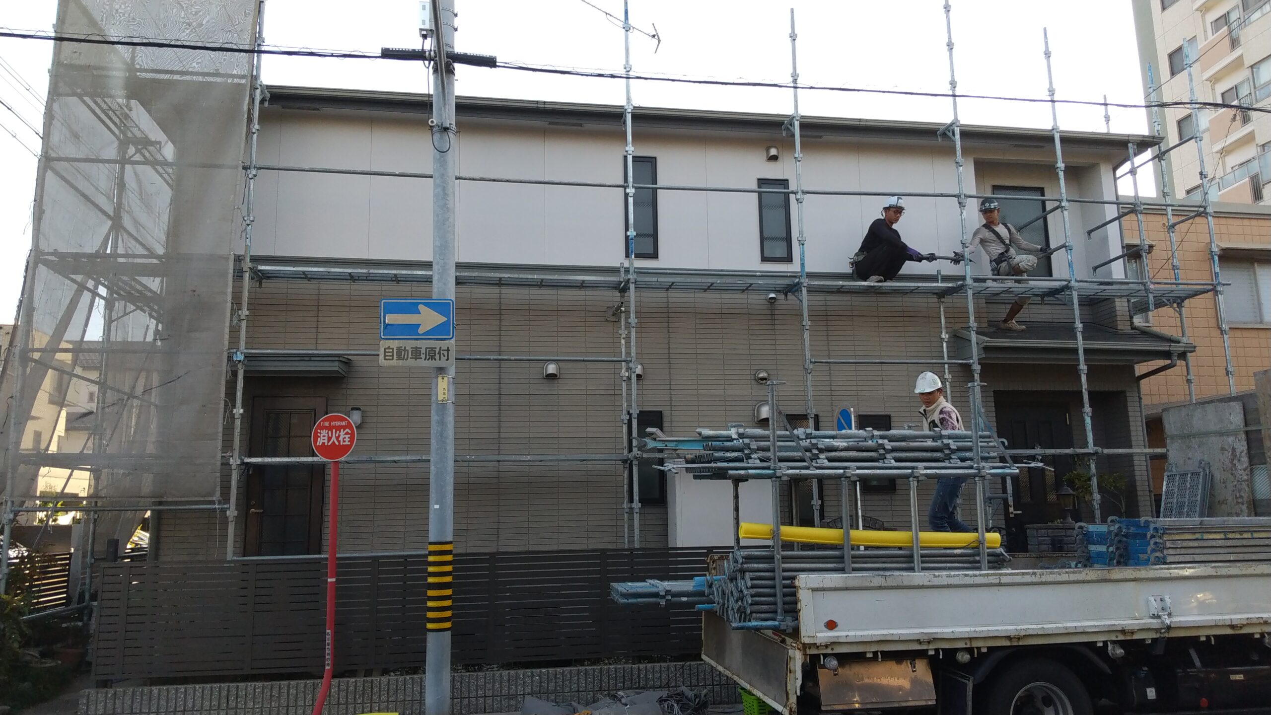 足場材の運搬から組立作業の終了まで 一般のお住いなら1日で完了致します。