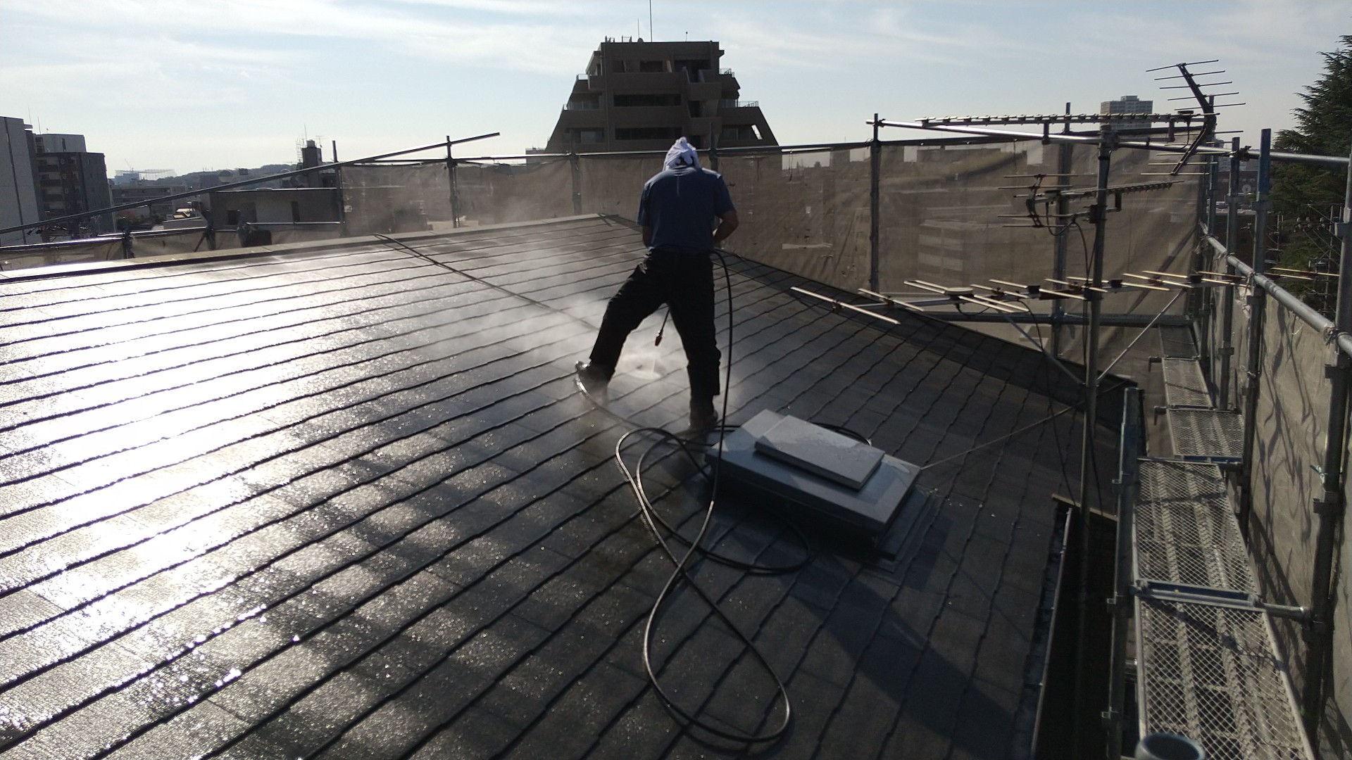 高圧洗浄の作業時に必要な水道は、お客様にお借り致しますので、よろしくお願い致します。